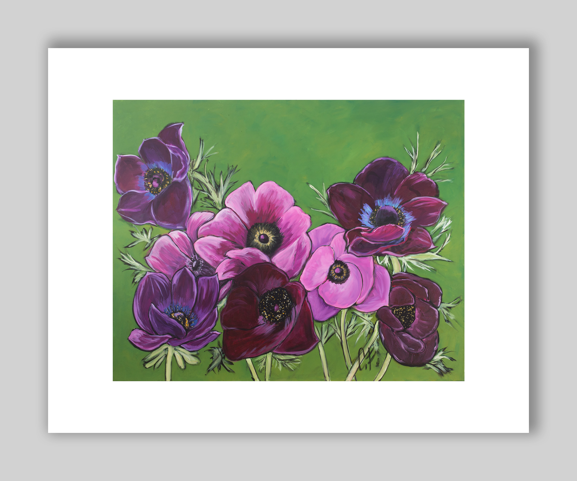 Prints have an over all size of 8 inches x 10 inches , 11 inches x 14 inches and, 16 inches x 20 inches respectively. All prints except 16×20 are matted. All prints are signed by the artist.
