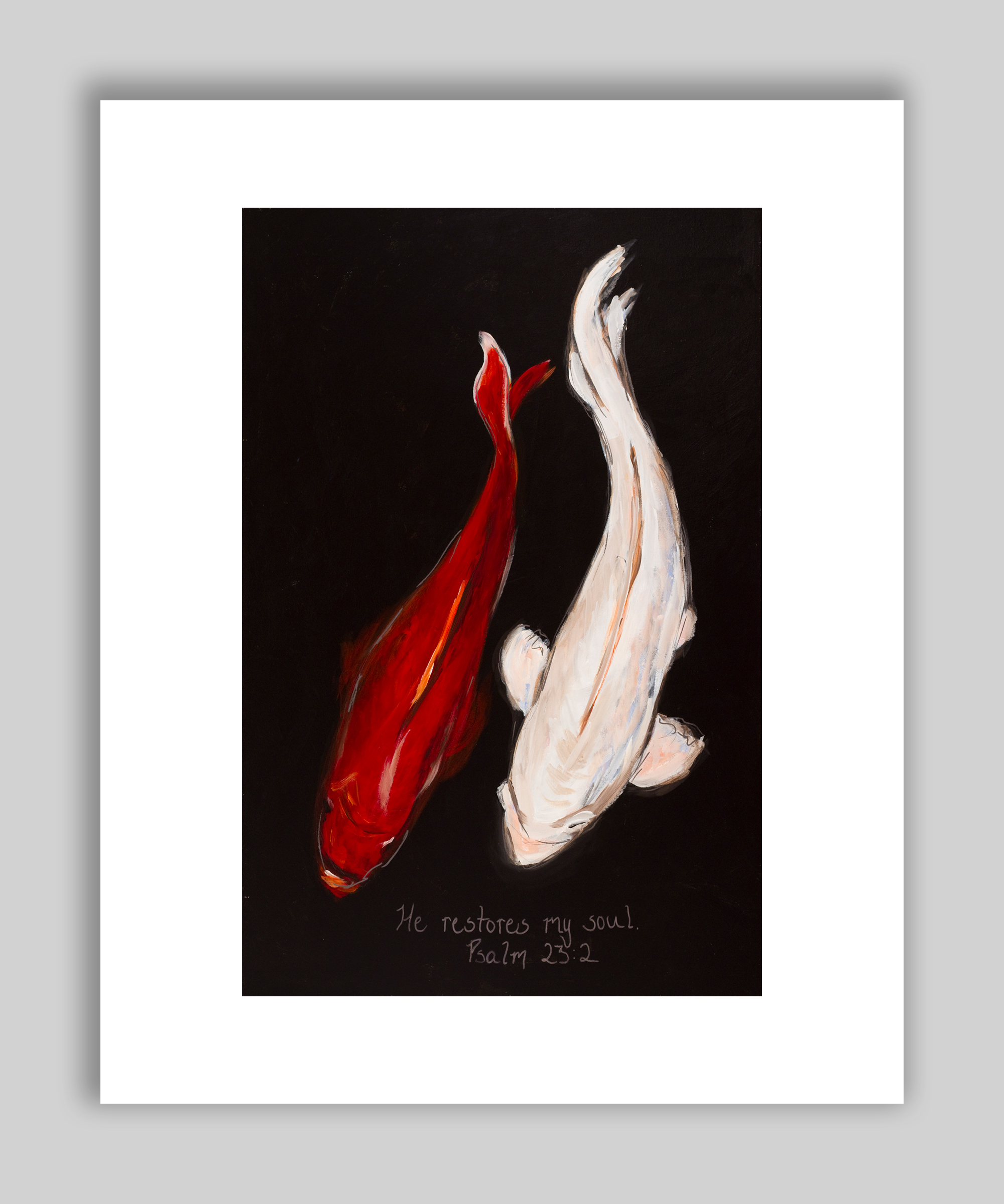 Archival print of a painting of 2 koi.