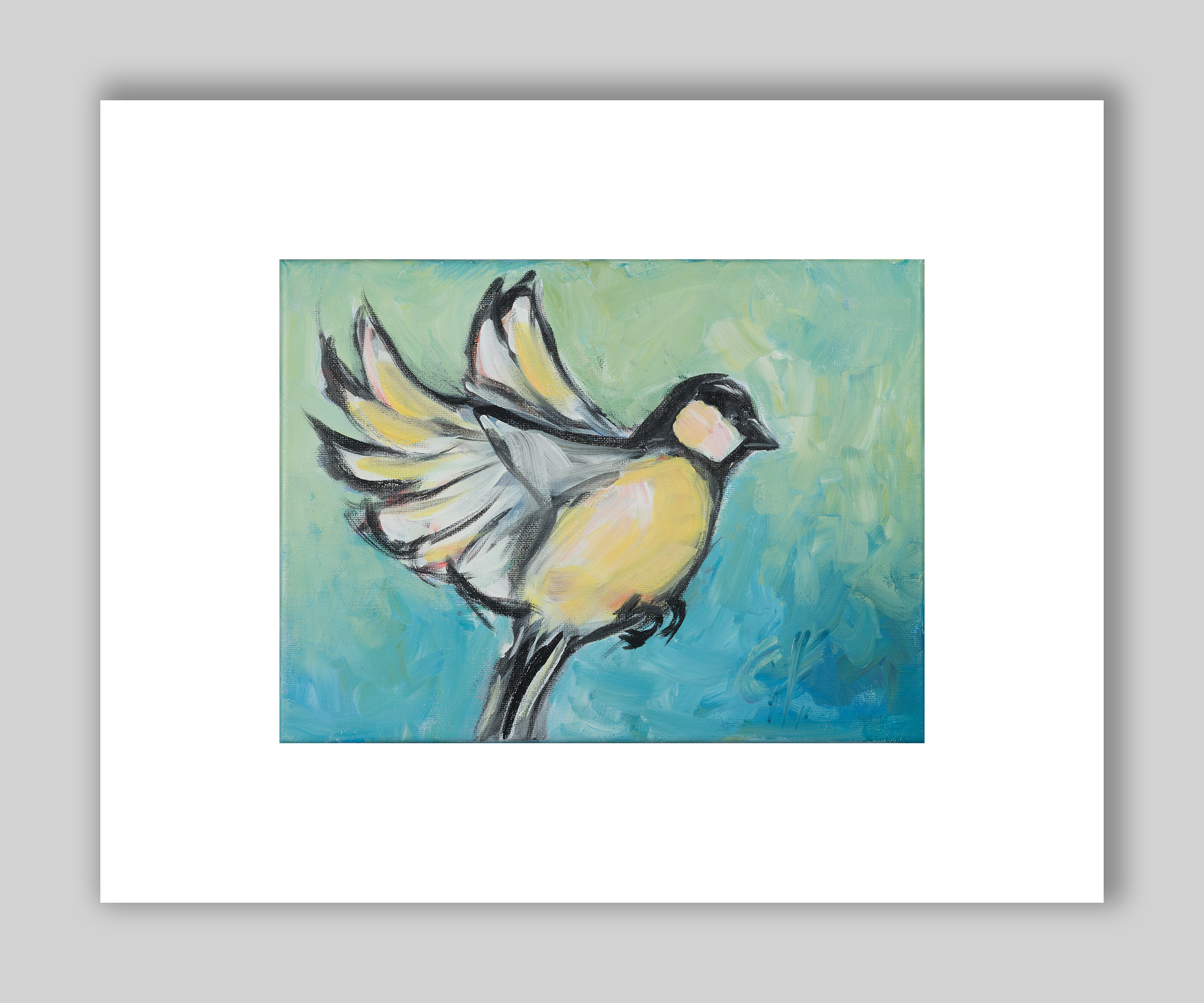 Archival print of a painting of a bird in flight.